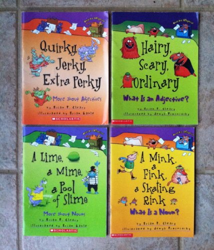 A set of four books in the Words Are Categorical Series by Brian P. Cleary. Each book has 30 pages of color illustrations and text that teach grammar to children in a humorous and creative style. Titles include A Mink, a Fink, a Skating Rink: What is a Noun? ~ A Lime, a Mime, a Pool of Slime: More About Nouns ~ Hairy, Scary, Ordinary: What Is an Adjective? ~ Quirky, Jerky, Extra Perky: More About Adjectives.